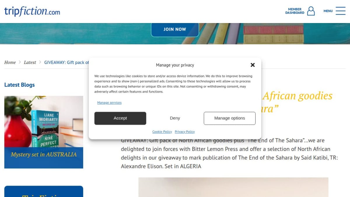 This prize includes a selection of North African items such as a book titled 'The End of the Sahara', a box of dates, organic couscous, spices, a decorative lantern, and a jar of harissa paste.