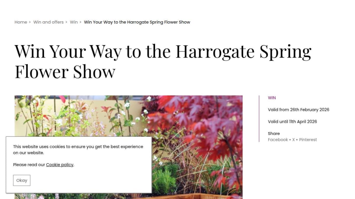 This prize includes a pair of VIP tickets to the Harrogate Spring Flower Show, complete with VIP parking. Additionally, the winner receives a trug filled with various gardening goodies.