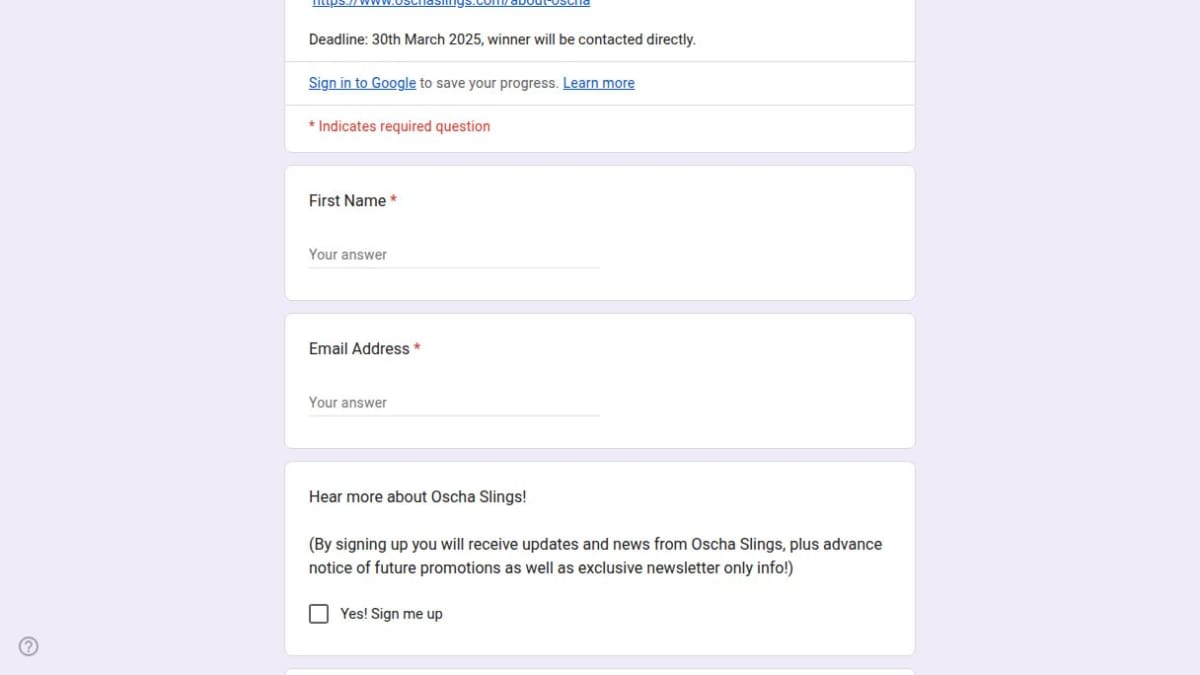 This prize is an Oscha Shire Westfarthing Bairn Carrier, designed for carrying an infant or small child. It is a product from Oscha Slings, a company specializing in baby carriers.