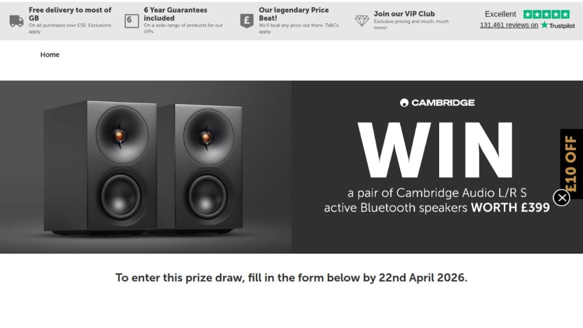 This competition offers a pair of Cambridge Audio L/R S Active Speakers. These speakers provide high-quality audio output and are designed for modern sound systems.
