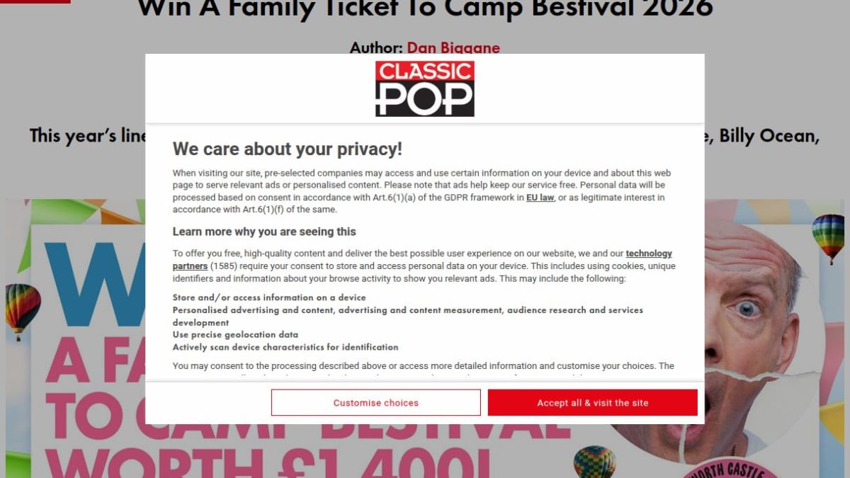 This prize is a family ticket for two adults and up to four children for the Camp Bestival festival in Dorset. The prize also includes a Camping Plus pitch in a reserved field and parking.