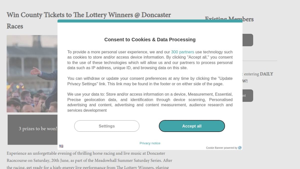 This prize includes a pair of County Enclosure tickets, admission only, for The Meadowhall Summer Series featuring The Lottery Winners live performance at Doncaster Racecourse. The event is scheduled for June 20th, 2026, following the day's horse racing.