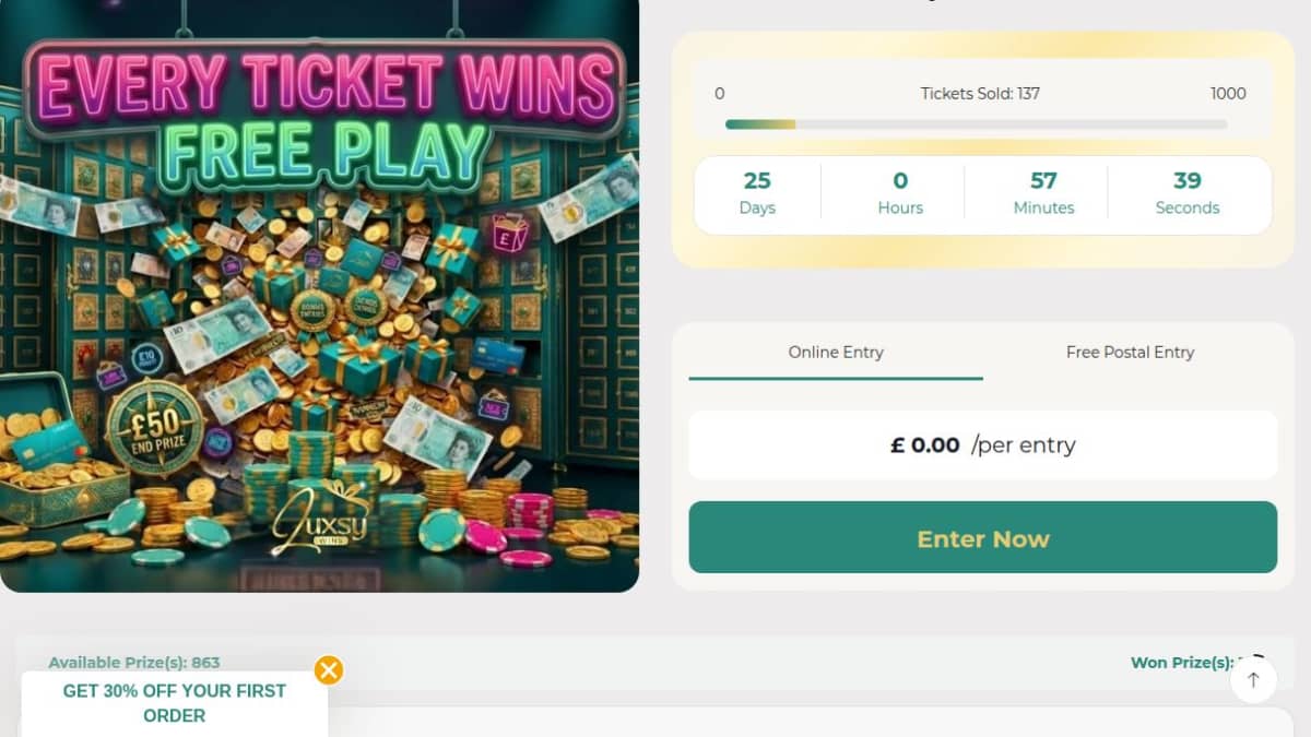 The competition offers instant wins consisting of cash or site credit. Additionally, there is a separate grand prize of £50 site credit awarded at the end of the competition.