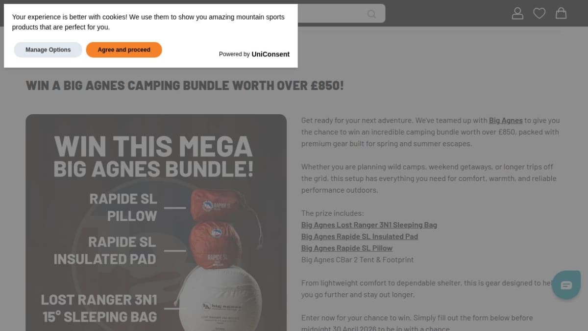 This incredible camping bundle includes premium gear from Big Agnes, featuring a Lost Ranger 3N1 Sleeping Bag, a Rapide SL Insulated Pad, a Rapide SL Pillow, and the CBar 2 Tent with Footprint. This collection provides reliable shelter and comfort for spring and summer outdoor adventures.