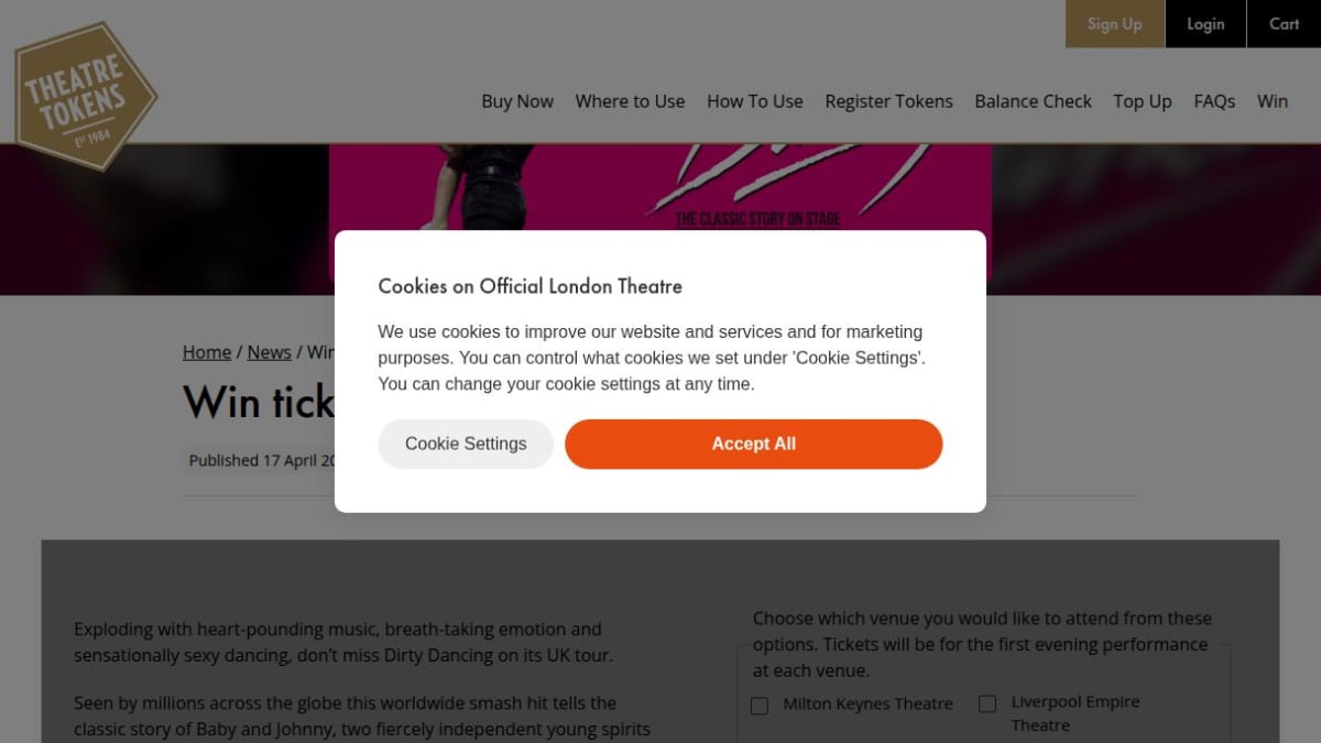 The prize is a pair of tickets to the opening performance of the Dirty Dancing tour at a venue chosen by the winner from the available locations. The tour spans multiple cities and dates through 2026 and 2027.