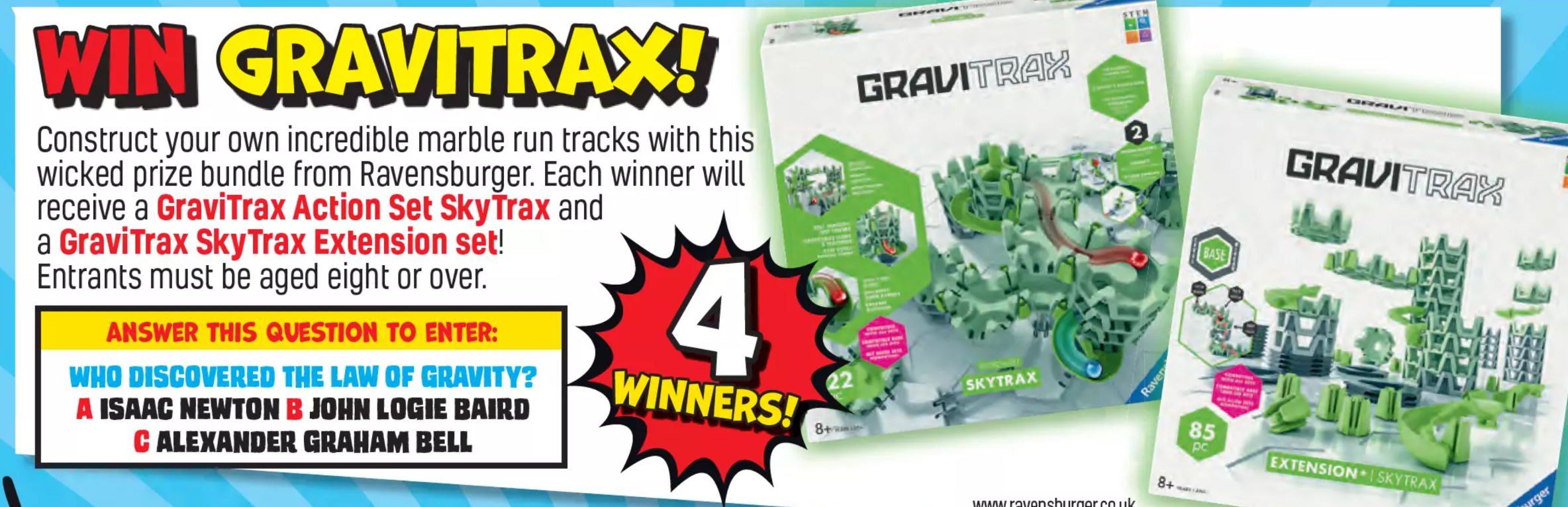 The prize consists of two Gravitrax construction sets from the Beano competition issue 4325. Gravitrax sets are known for combining fun with STEM principles through building marble runs.