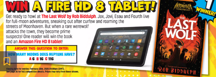 The prize includes a Fire HD 8 Tablet bundle paired with Issue 4322 of the Beano comic book. This package offers both digital entertainment and print reading material.