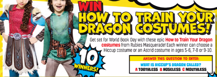 This prize consists of How To Train Your Dragon themed costumes associated with Beano Issue 4322. The specific nature or quantity of the costumes is not detailed.