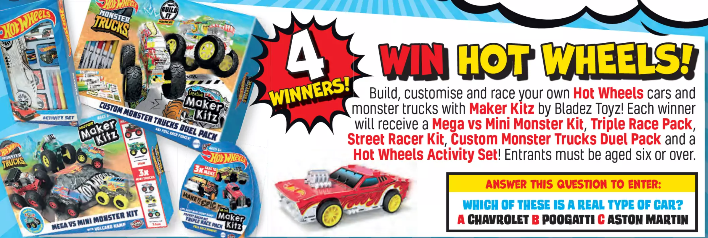This prize is associated with Issue 4325 of Beano and involves winning Hot Wheels merchandise. The specific value or details beyond the general mention of Hot Wheels are not specified in the accessible text.