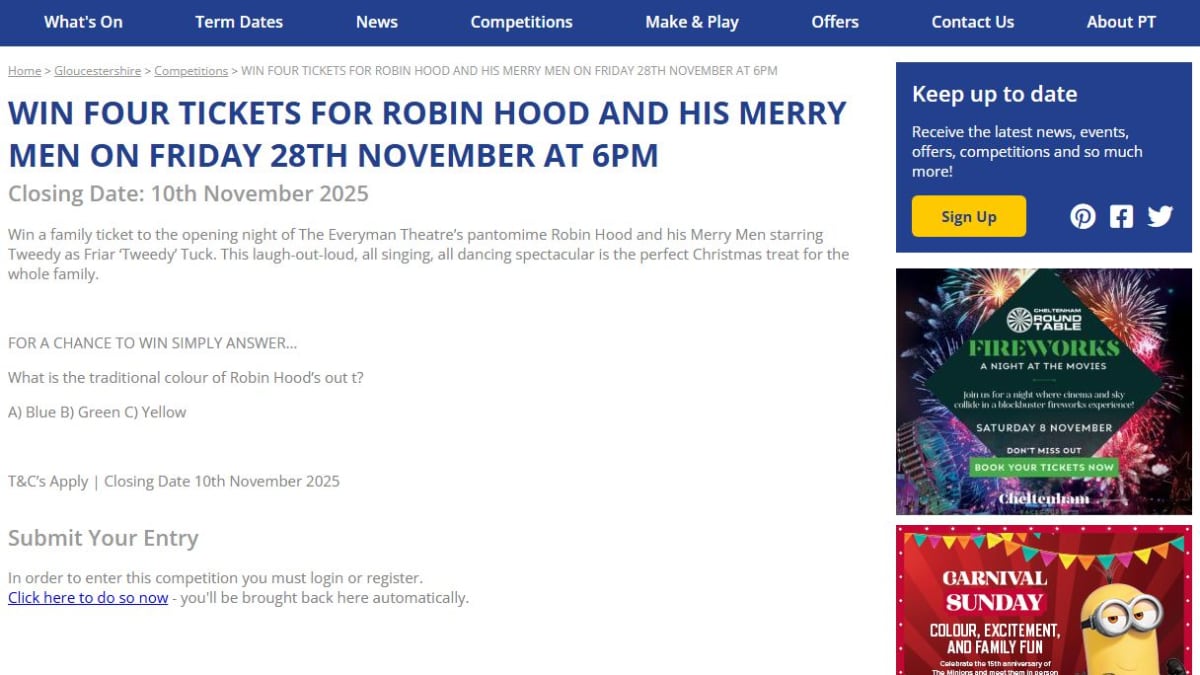 This prize includes four tickets to attend the opening night of The Everyman Theatre’s pantomime production, Robin Hood and his Merry Men. The spectacular show promises a laugh-out-loud, all-singing, and all-dancing performance suitable for the whole family.
