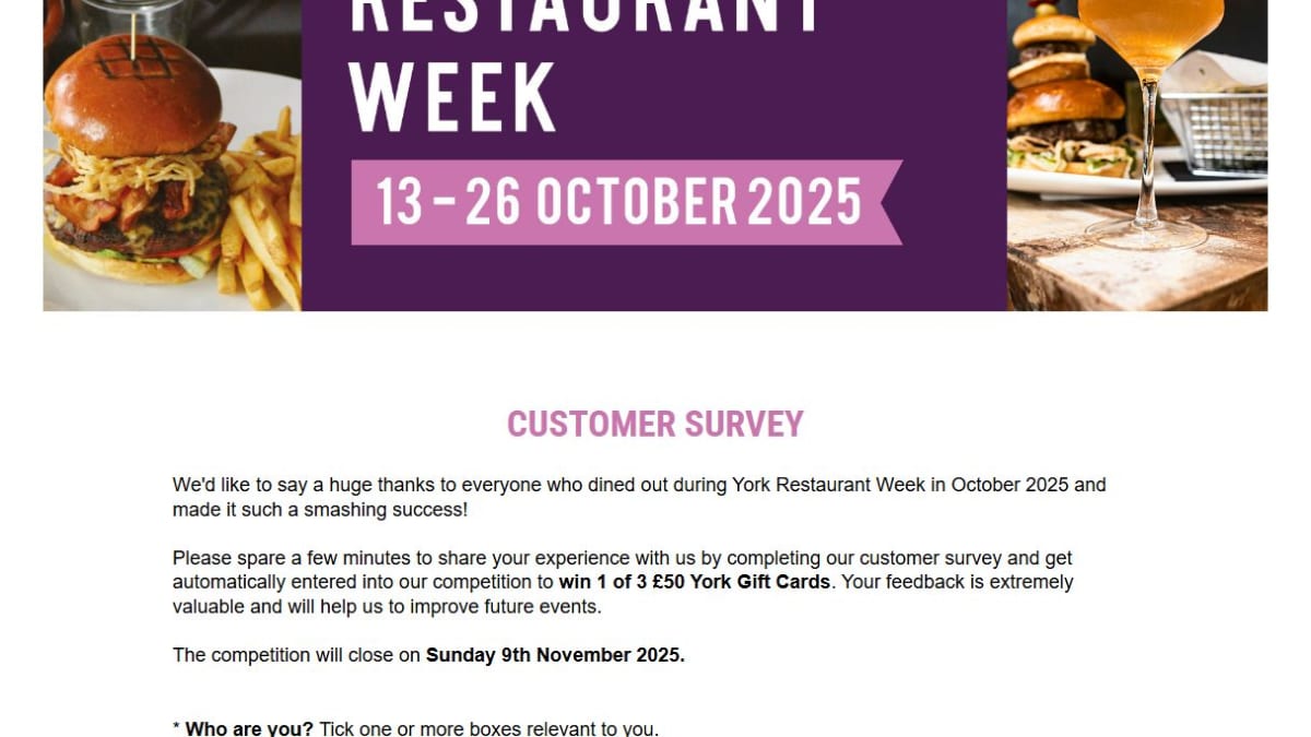 This is a £50 gift card valid for use in York. It is one of three available prizes offered as thanks for participating in the customer feedback survey.
