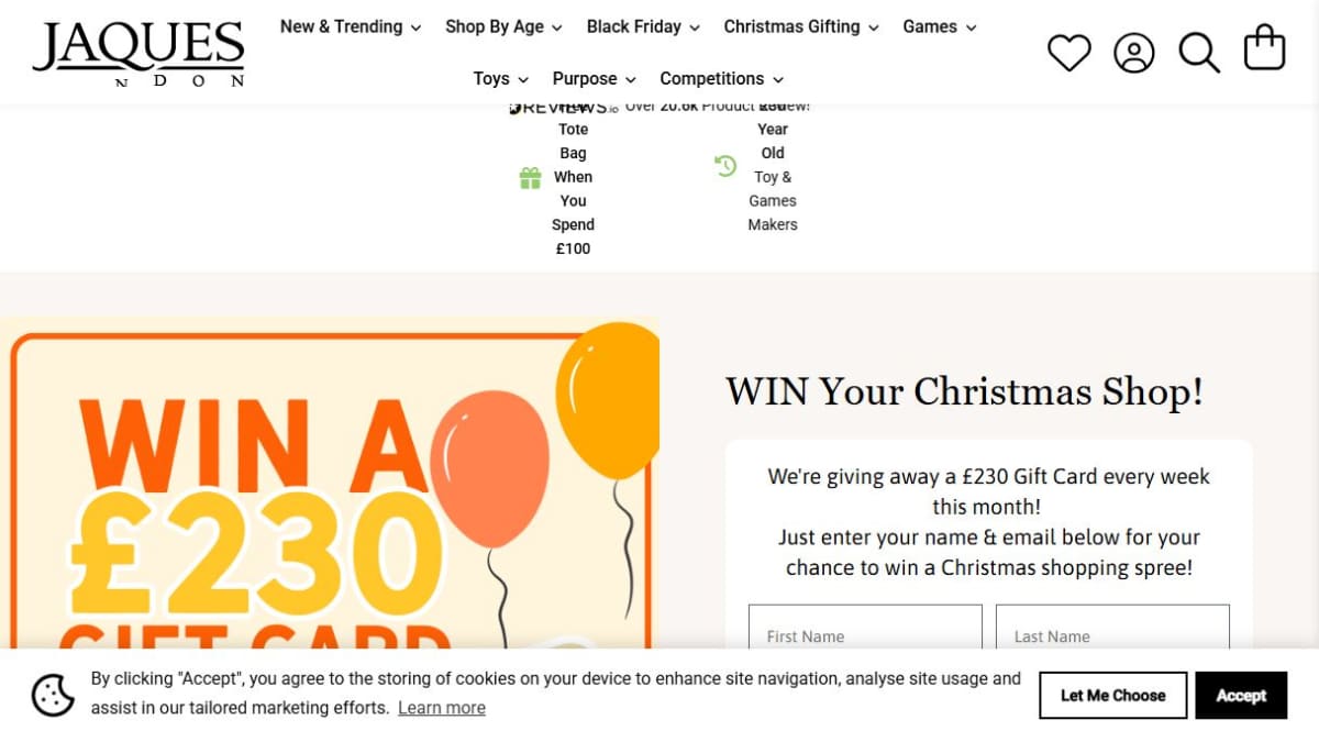 This prize is a gift card valued at £230 from Jacques London. It can be utilized for a Christmas shopping spree on their selection of items.