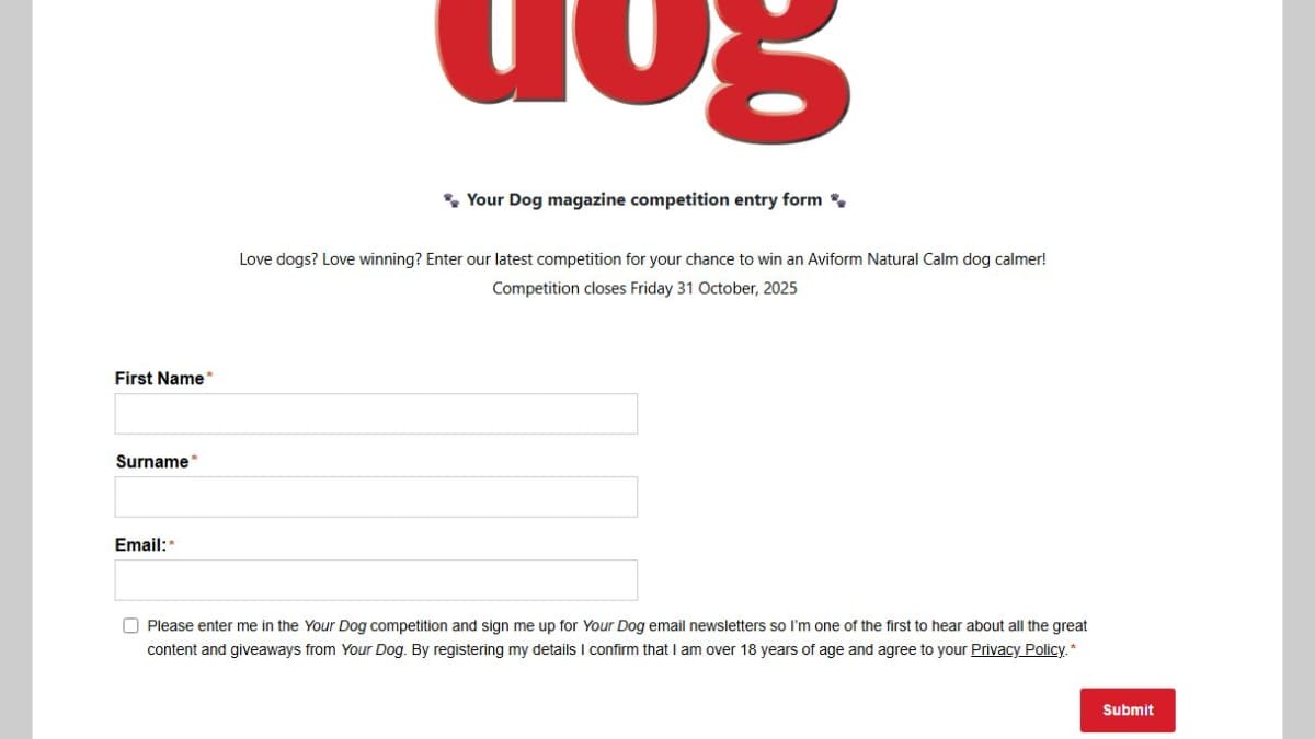 This is a competition prize for an Aviform Natural Calm dog calmer. This product is designed to help soothe and calm dogs.