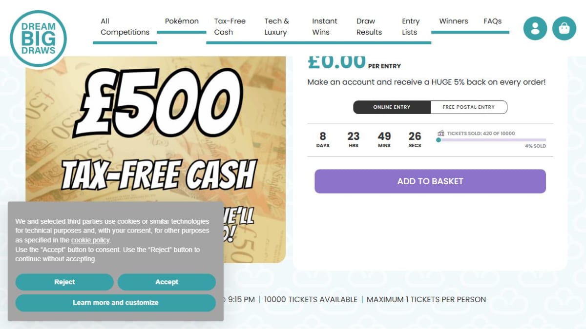 This competition offers a chance to win a £500 cash prize that is entirely tax-free. Entry is free, although spending over £10 on other items may qualify the entrant for a doubled prize of £1,000.