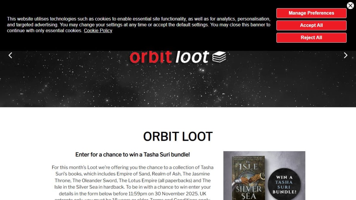 The prize is a collection of Tasha Suri's books, including several paperbacks like Empire of Sand and Realm of Ash, alongside one hardback copy of The Isle in the Silver Sea. This bundle offers several titles from the author's works.