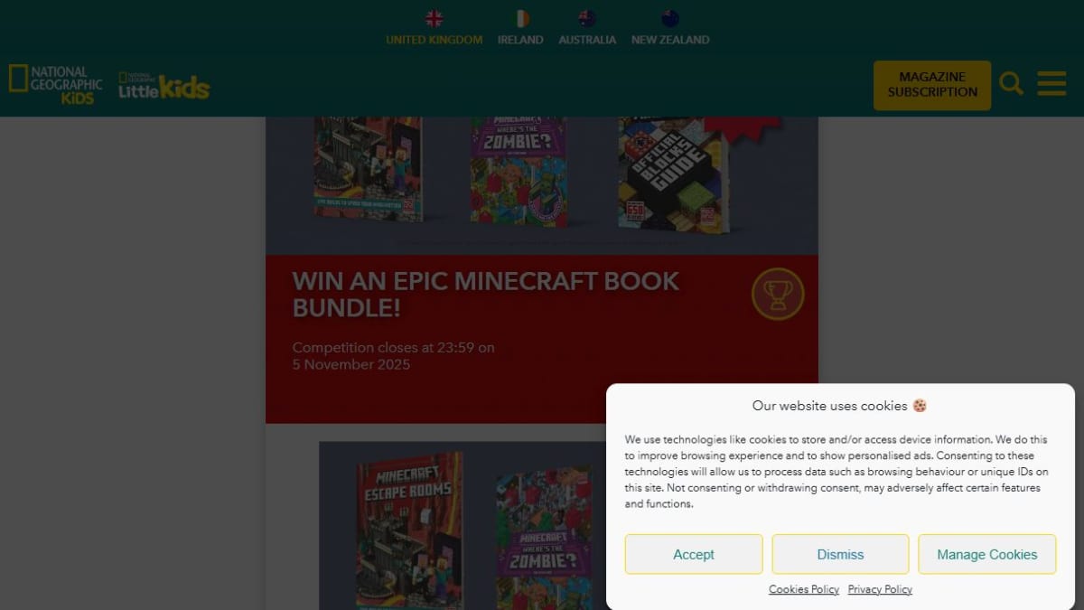 The prize includes five copies of a brand-new Minecraft book bundle for each of the five winners. The collection features several titles related to the popular game, such as the Ultimate Mobspotter’s Collection and the Official Blocks Guide.