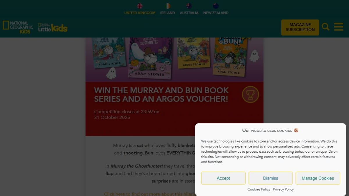 The prize includes all four books from the Murray and Bun! series and a £100 Argos gift voucher. This collection offers engaging reading material for young audiences.