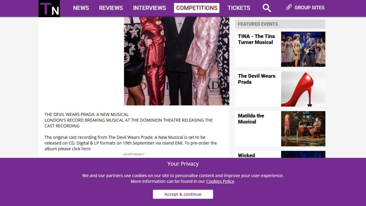 The prize consists of three copies of The Devil Wears Prada: A New Musical original cast recording on vinyl LP format. This recording features songs from the hit West End musical composed by Elton John.