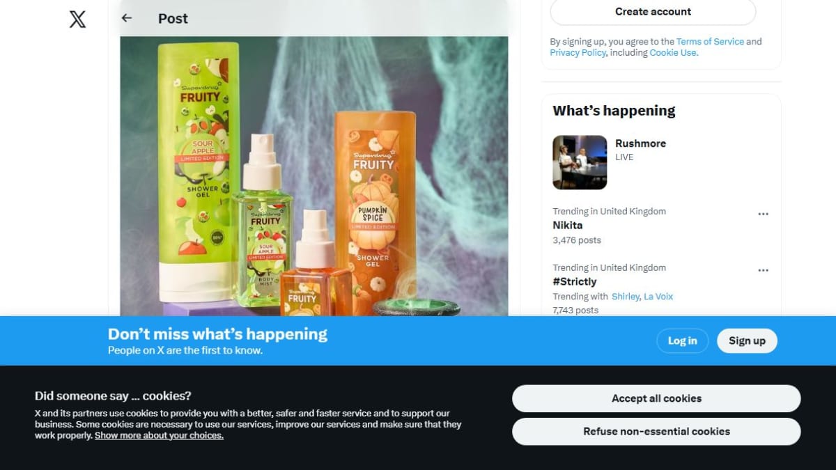 This prize includes a set of Limited Edition Halloween Fruity Shower Gels and coordinating Body Mists. This collection features seasonal scents for personal care.
