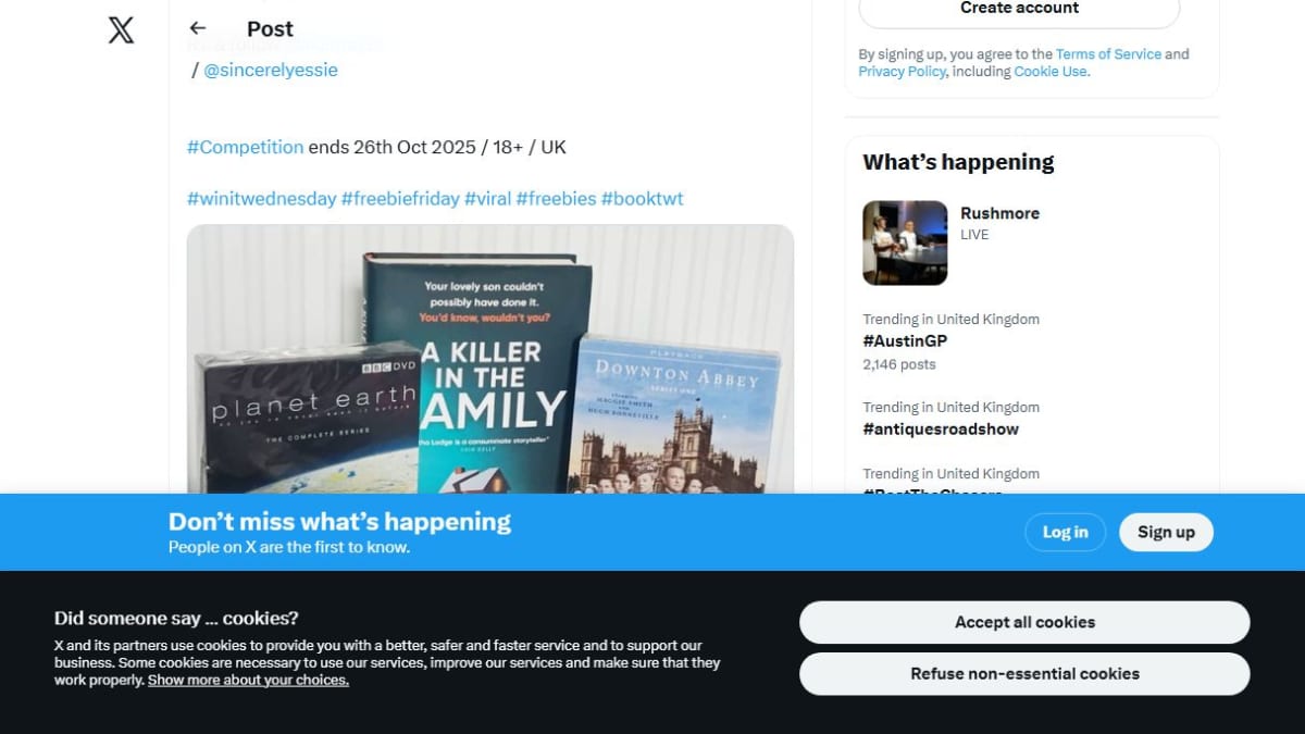 This festive prize includes a collection of physical media featuring both a book and several DVDs. The bundle appears to contain titles like Planet Earth, Downton Abbey, and Poldark-related items.