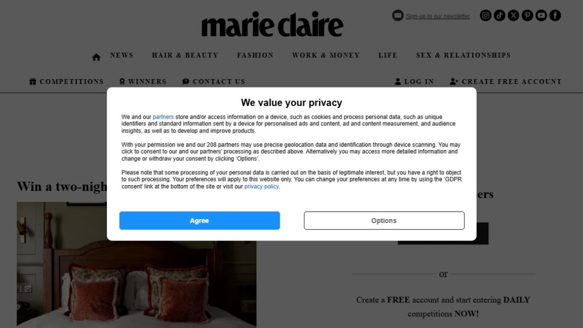This prize provides two nights' accommodation in a Square View room at The Angus Hotel & Spa in Blairgowrie, Perthshire. It includes daily full Scottish breakfast, dinner on the first night, afternoon tea, and complimentary spa access with one massage or treatment.