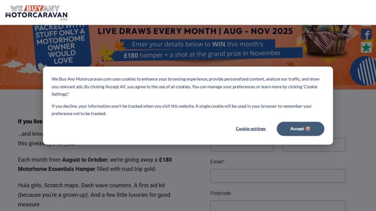 Monthly prizes include a Motorhome Essentials Hamper containing road trip accessories and luxuries valued at £180. The grand prize in November is a Starlink Mini for remote connectivity.