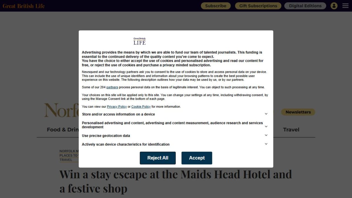 This prize includes a one-night stay for two in a Junior Suite at The Maids Head Hotel in Norwich. The experience also covers sparkling festive afternoon tea and a full English breakfast served in the historic WinePress Restaurant, along with complimentary parking.