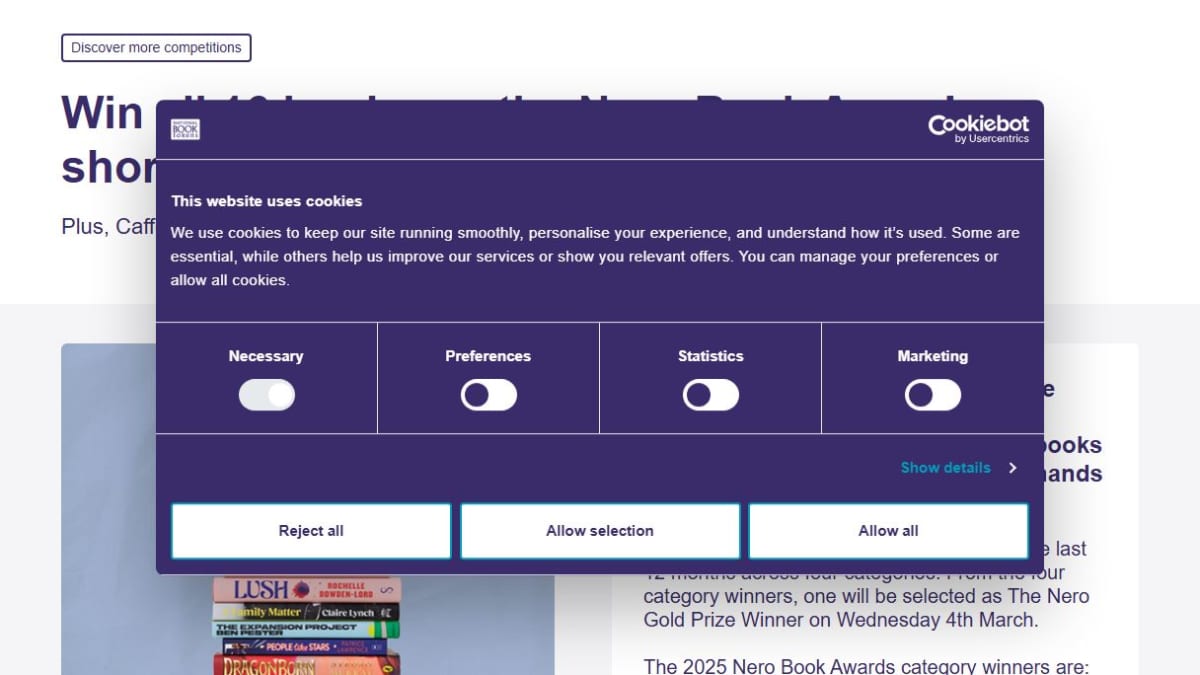 The prize includes a complete set of all 16 books from the Nero Book Awards Shortlist, featuring the four category winners. Additionally, the winner will receive two bags of Caffè Nero ground coffee, along with a branded notebook and pen.