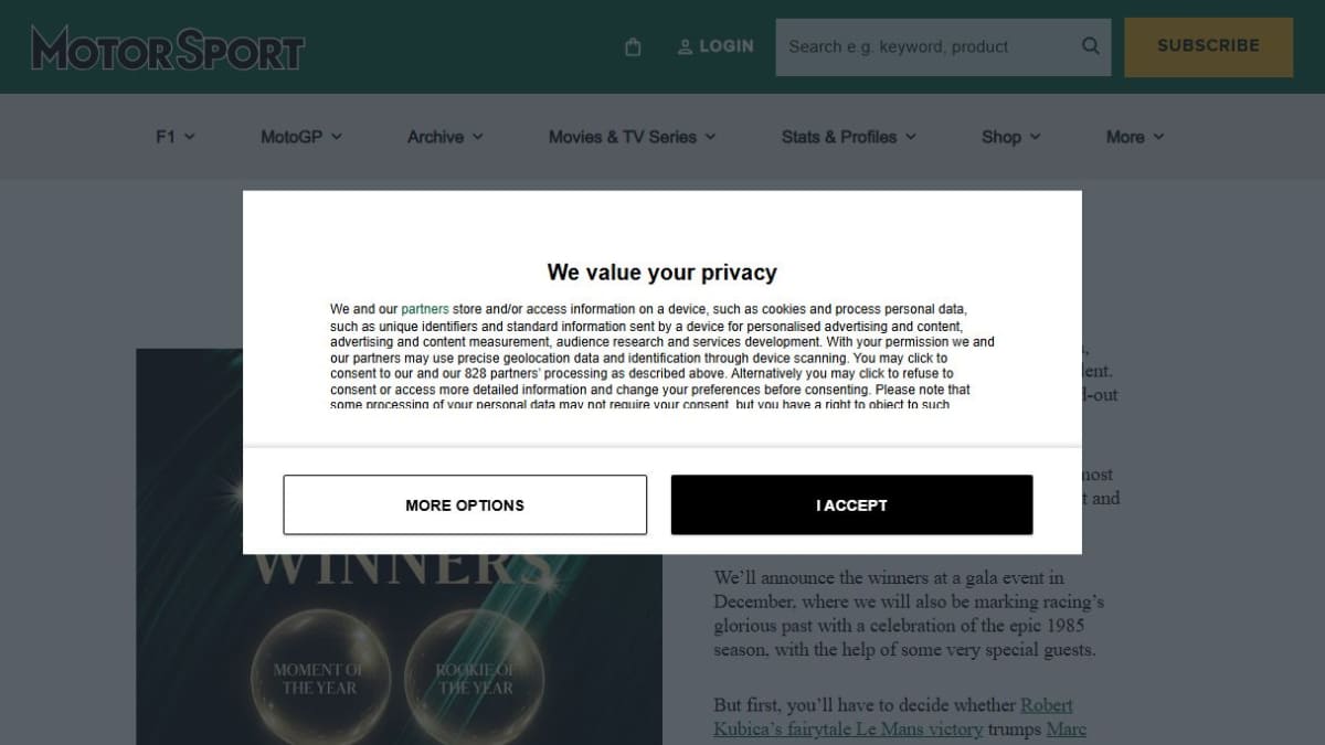 This prize is an exclusive gift box promoted by Motor Sport Magazine for voters participating in their annual awards. The box celebrates the moments and talent defining the current, future, and past seasons of motor racing.