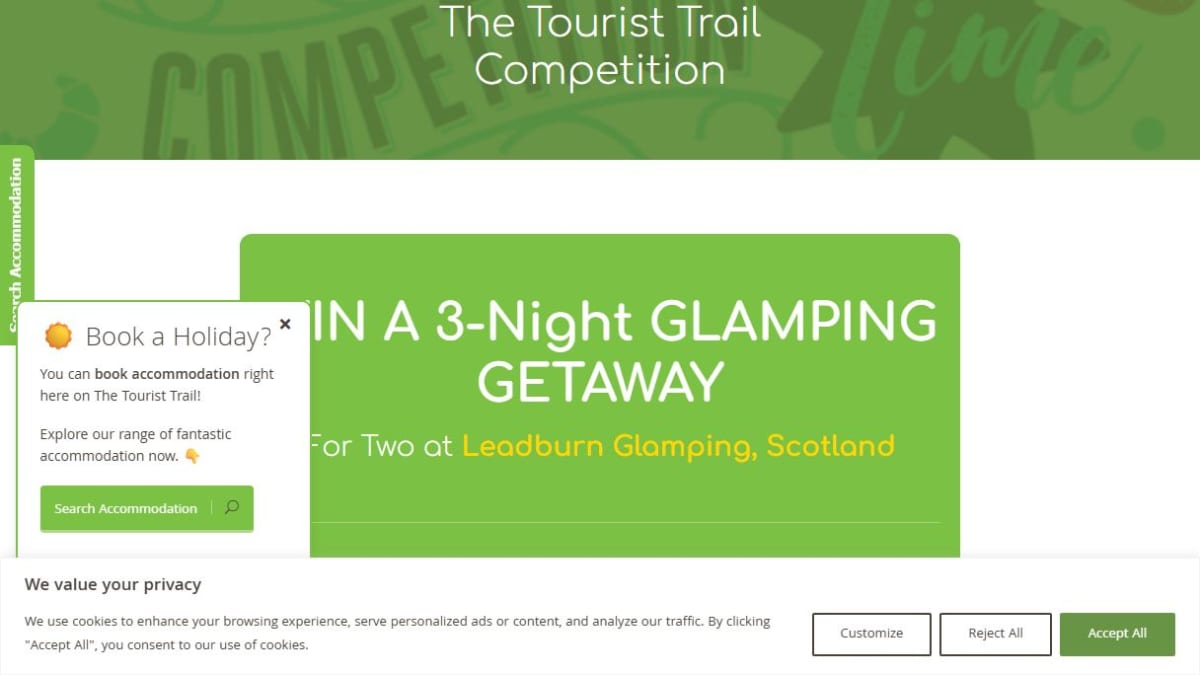 This prize includes a 3-night stay for two people in a luxury glamping pod at Leadburn Glamping in Scotland. The accommodation features amenities such as under-floor heating, a fully equipped kitchen, and a private hot tub, offering a perfect blend of countryside relaxation and proximity to Edinburgh.