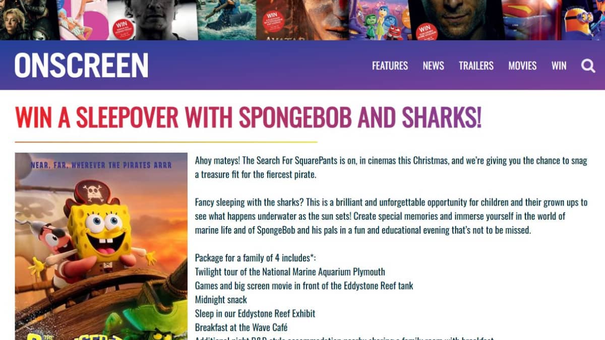 This prize for a family of four includes a twilight tour and sleepover at the National Marine Aquarium Plymouth in the Eddystone Reef Exhibit. The package also covers dinner, breakfast, and an additional night's accommodation nearby, plus Spongebob merchandise for the children and a travel allowance.