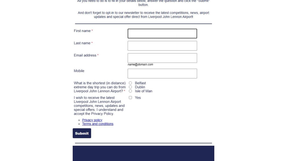 This prize includes a pair of flights to an extreme day trip destination, an EDT Liverpool t-shirt, a travel bag, and airport parking. Destinations include Belfast, Dublin, Isle of Man, Malaga, Barcelona, Alicante, Mallorca, and Faro.
