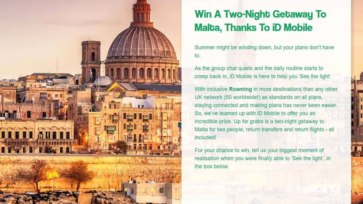 A two-night trip to Malta for two people, including return flights and transfers. The holiday will be in a centrally located four-star hotel.