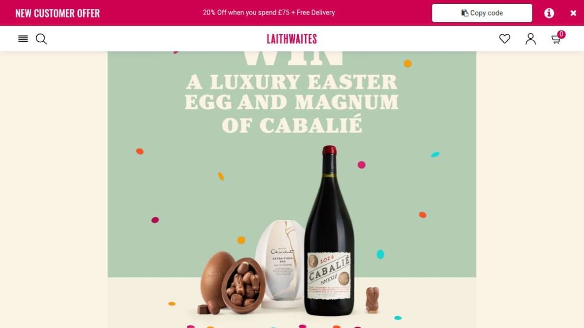 The prize bundle includes a luxury Easter egg, suggesting high-quality confectionery for the holiday season. Additionally, the winner receives a Magnum bottle of Cabalie wine.