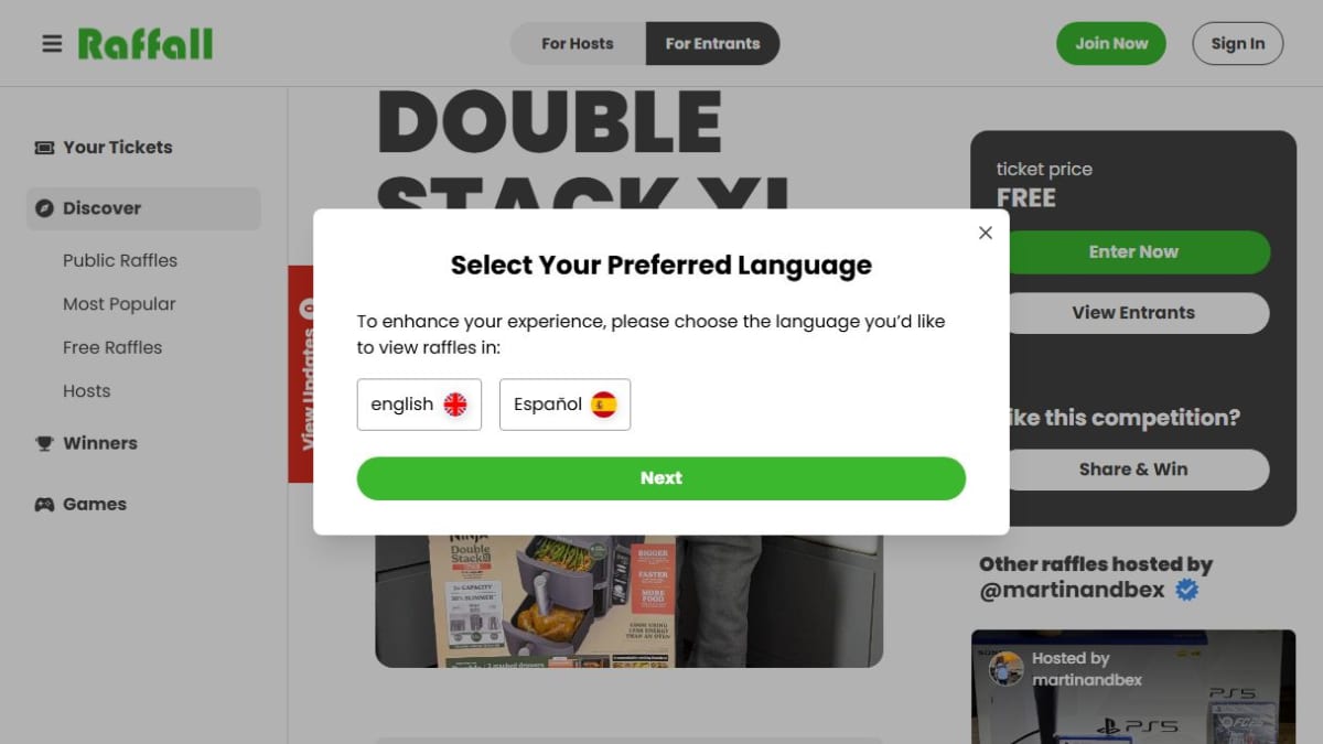 Suggested Answer: You have successfully entered this draw