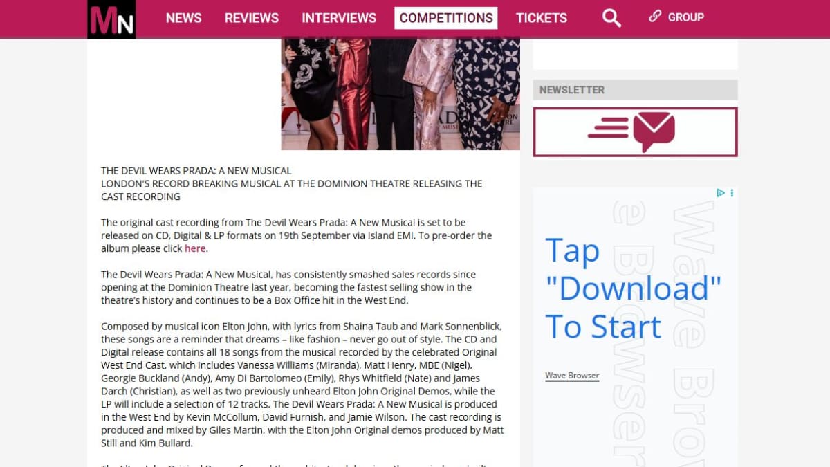 A vinyl record featuring the original cast recording of the musical The Devil Wears Prada. The album includes a selection of songs from the show, composed by Elton John.