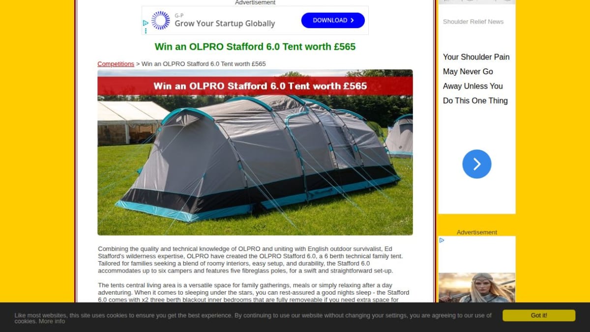 The prize includes tickets for the Caravan, Camping & Motorhome Show in Stratford scheduled for June 26th to 28th. This experience grants entry to enjoy the camping and exhibits at the event.