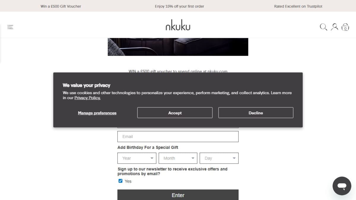 This prize is a gift voucher redeemable for purchases made online at Nkuku.com. The value allows the winner to select items for their home or lifestyle from the retailer's selection.