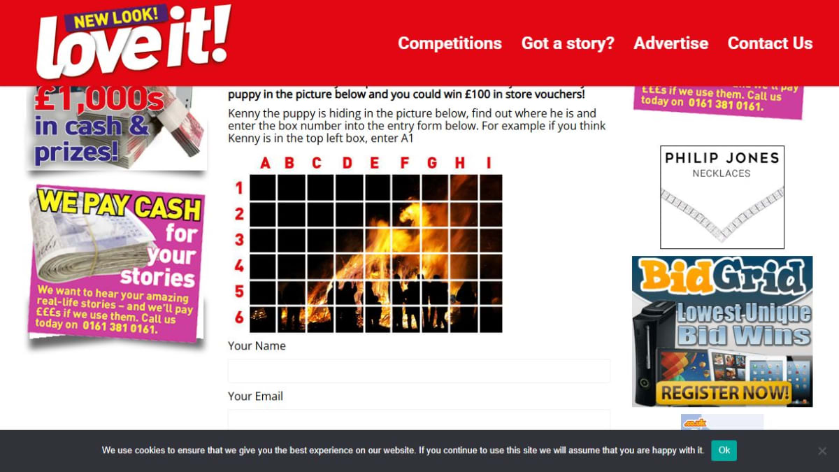 This prize consists of store vouchers valued at 100, allowing the winner to purchase items from the designated store. The competition involves locating a hidden puppy named Kenny within an image.