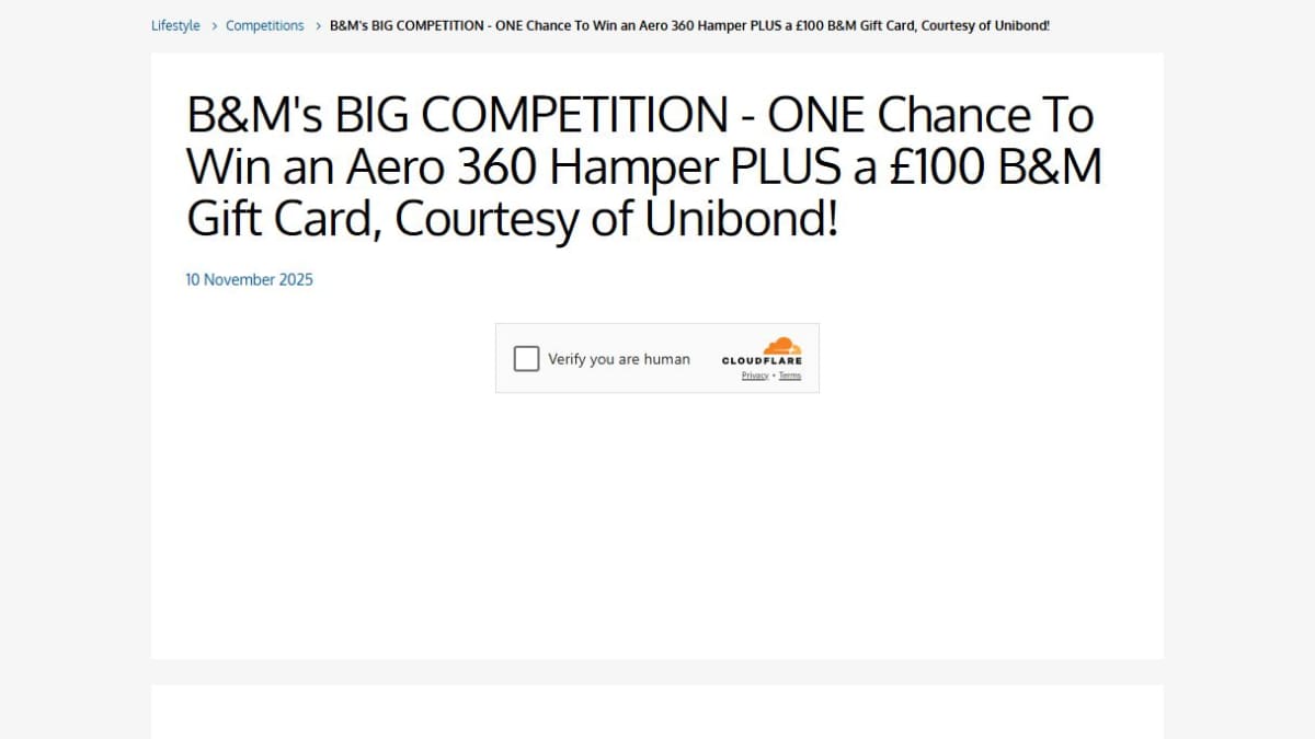 The prize package includes a £100 gift card for B&M stores, allowing the winner to select their preferred items. It is also bundled with an Aero 360 Moisture Absorber product.