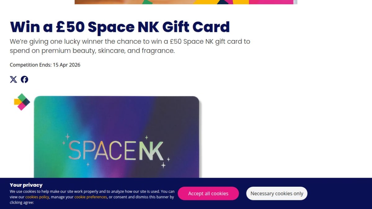 One lucky winner will receive a £50 gift card to spend at Space NK, either online or in-store. This card can be used to purchase premium beauty products, skincare items, or fragrances.