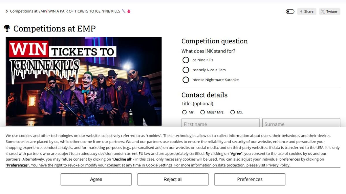 This prize includes two tickets to see the band Ice Nine Kills live during their UK tour in December. Attendees can choose between shows in Manchester, Glasgow, Nottingham, or London.