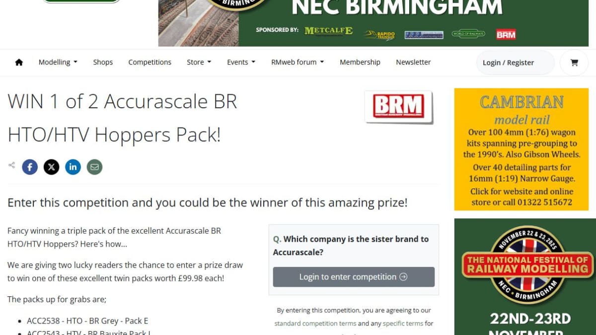 This prize includes a twin pack of Accurascale BR HTO/HTV Hoppers. These model train cars are highly detailed and collectible.
