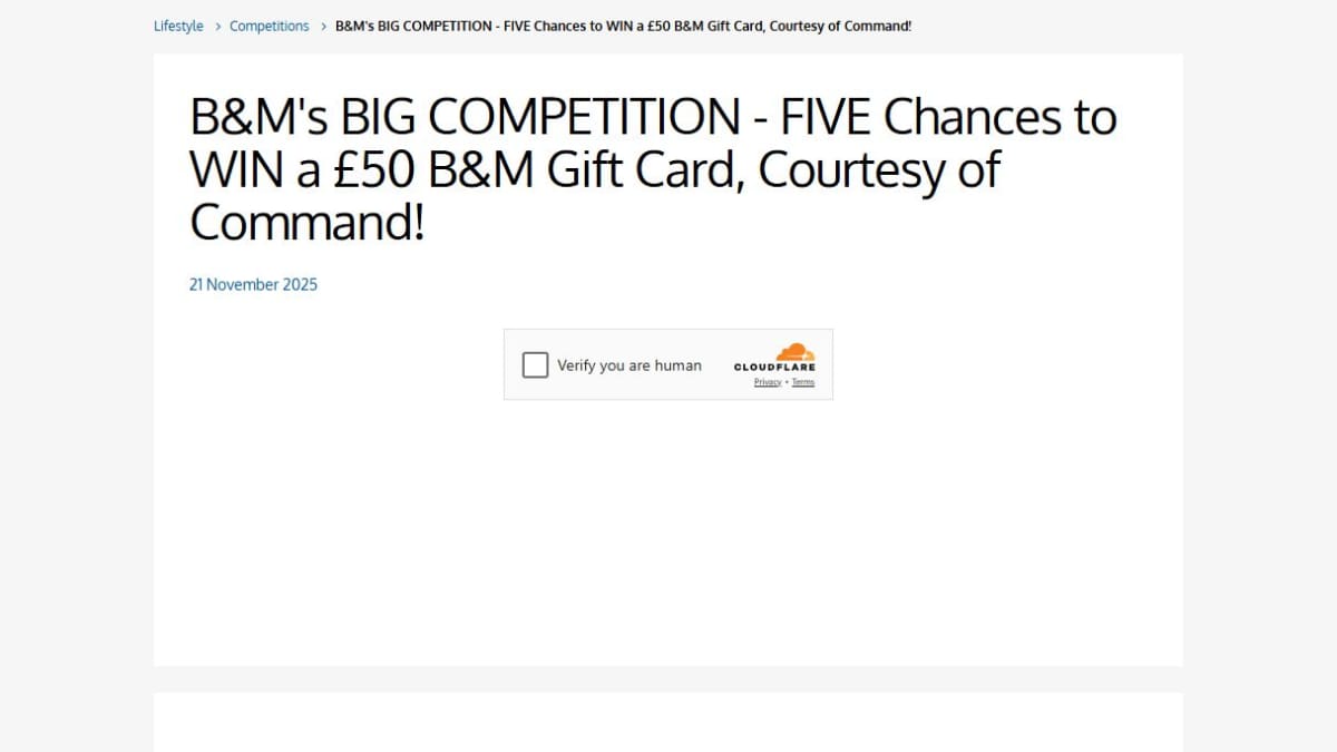This prize is a gift card valued at fifty units of currency, usable for purchases at B&M stores. It can be used towards various home and lifestyle items.