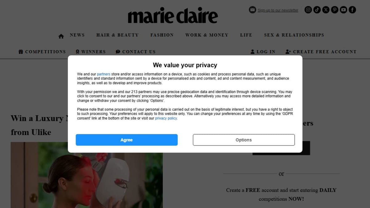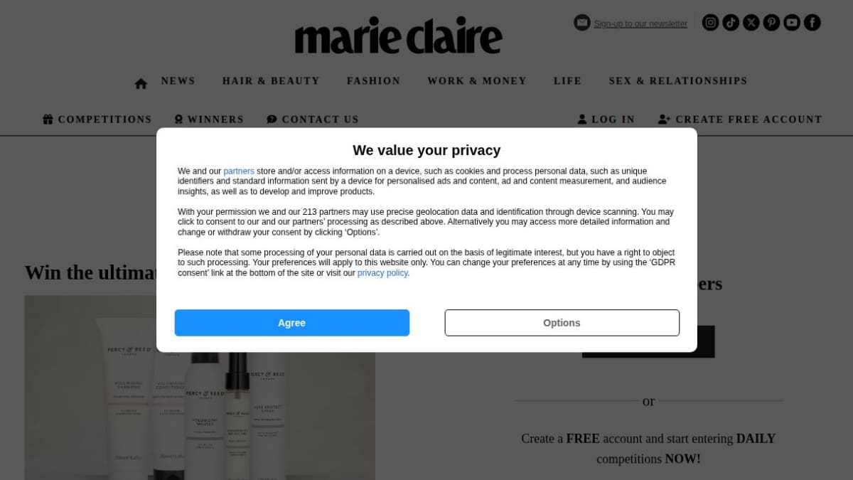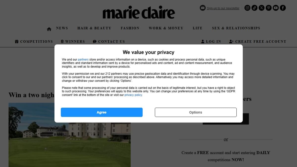 Marie Claire is a women’s lifestyle magazine website that has content about fashion, beauty, relationships and news stories. In addition to the editorial content on its site it also hosts an area for prize draws and competitions where you can enter free to win prizes across various categories such as lifestyle, wellness, travel (including holidays), hotel stays, tickets to business events, luxury hampers and health and wellbeing packages.