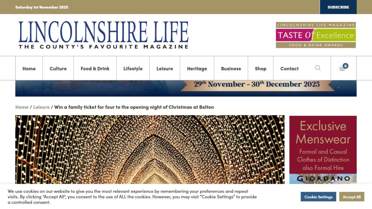 This prize is a family ticket for four people to attend the opening night of the Christmas light trail at Belton House in Lincolnshire. The experience features thousands of twinkling lights and illuminations.