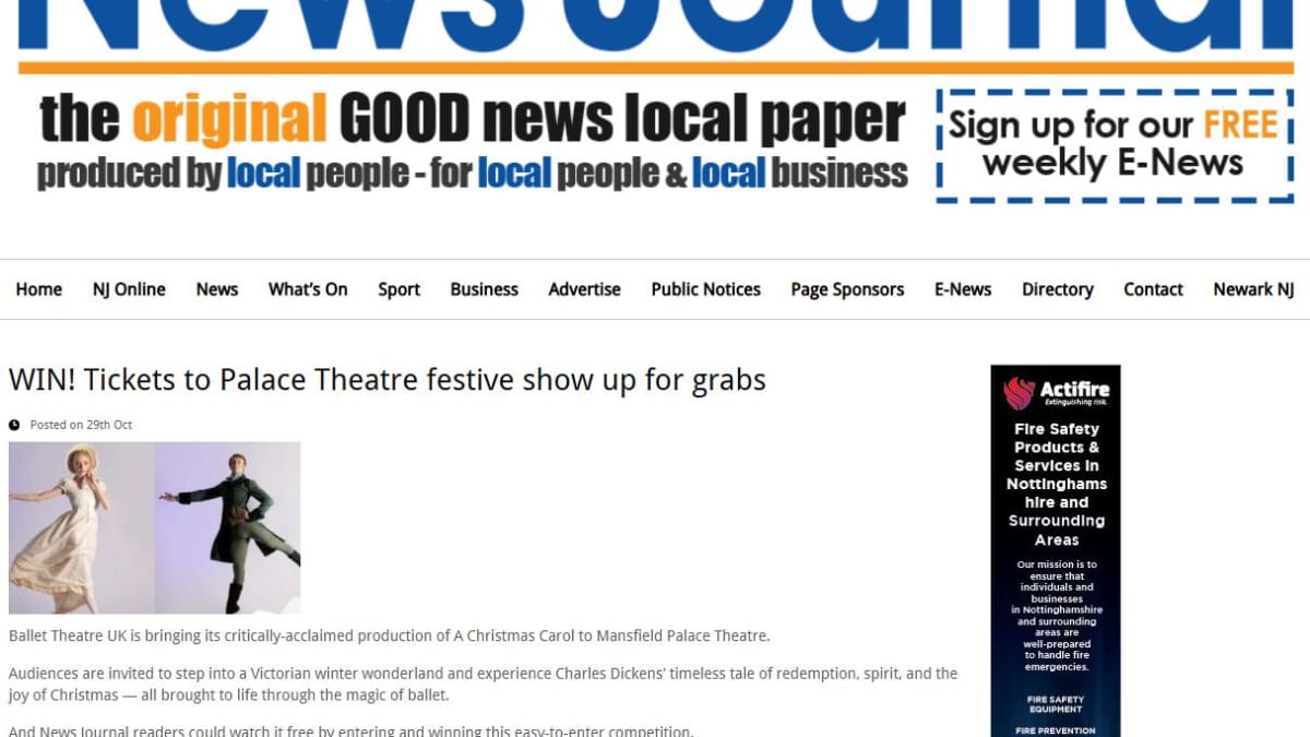 A family prize consisting of four tickets to see Ballet Theatre UK's critically-acclaimed production of A Christmas Carol at Mansfield Palace Theatre. The show brings Charles Dickens’ classic tale to life through ballet, featuring sumptuous costumes and innovative choreography.
